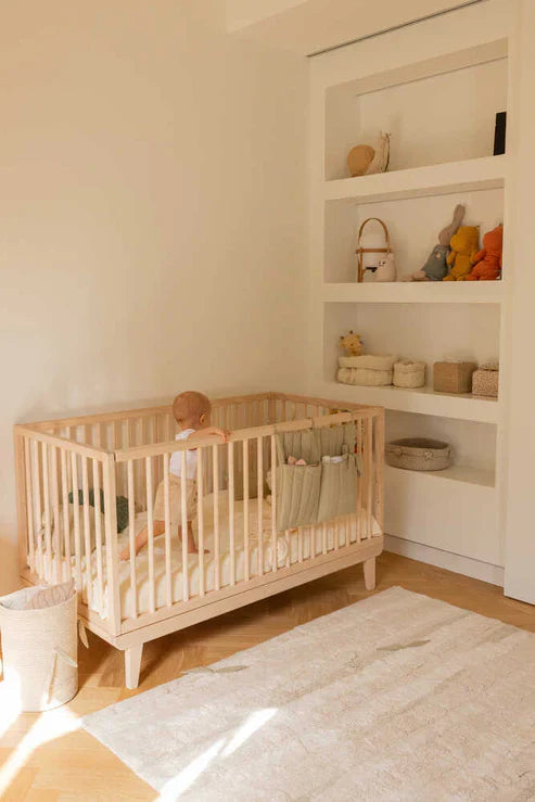 Comes decorated with 5 removable bamboo leaves in embroidered organic cotton poplin. The rug comes packed in a practical reusable cotton tote bag.