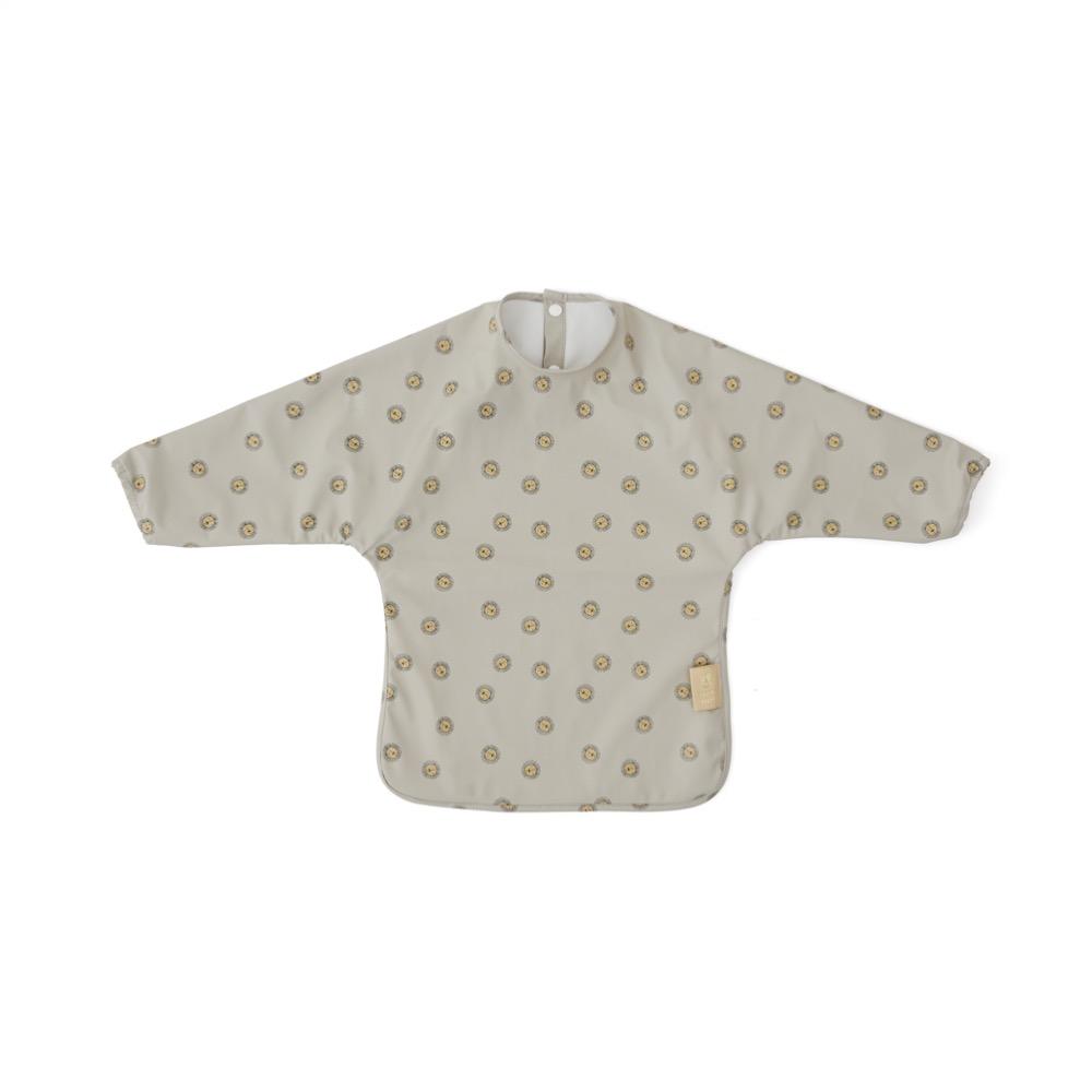 The apron ensures that the baby's clothing does not get dirty during the meal. The apron/bib covers the front and the arms of the child.