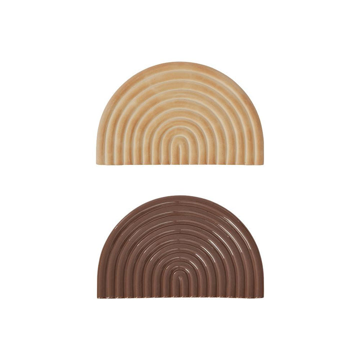 Hang the Ceramic Rainbow Tray on the wall to give the wall a soft and organic look. The ceramics expression gives the home a warm and cozy feel with thoughts back to childhood. Use it on the table for serving food or as decoration. The lovely warm colors fit nicely into the modern home.
