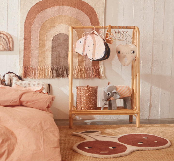The Cherry Rug is made in a tuftet quality of wool and cotton, that is soft to play on.
