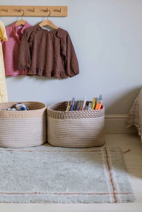Aprons on! Lorena’s kitchen is the place where traditional striped tea cloths become rugs. A versatile design in various easy-fit sizes to decorate any home space or, why not, to add a vintage culinary touch to the kids’ play kitchen.