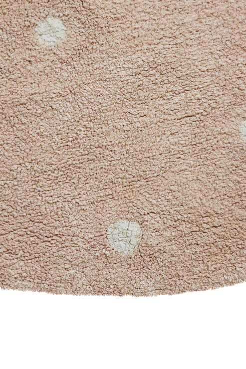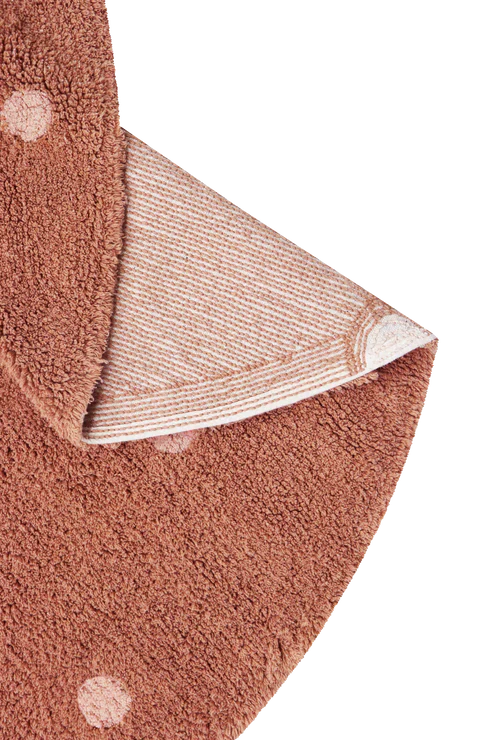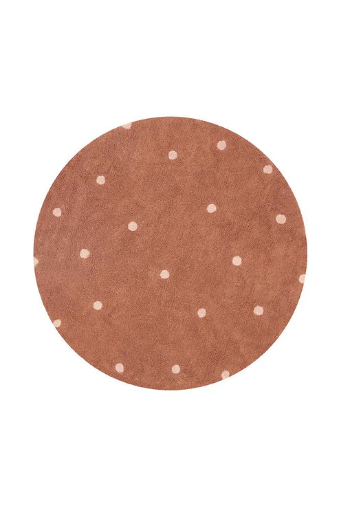 A soft, plush cotton rug with a dots design that never goes out of style. Tufted in extra high-density, soft cotton pile, the Round Dot rug is available in three beautiful color combinations: Chestnut with Rose dots, Rose with Natural dots and Blue Sage with Vintage Blue dots.