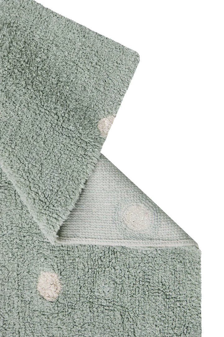 A soft, plush cotton rug with a dots design that never goes out of style. Tufted in extra high-density, soft cotton pile, the Mini Dot rug is available in three color combinations: Chestnut with Natural dots, Rose with Natural dots and Blue Sage with Natural dots.