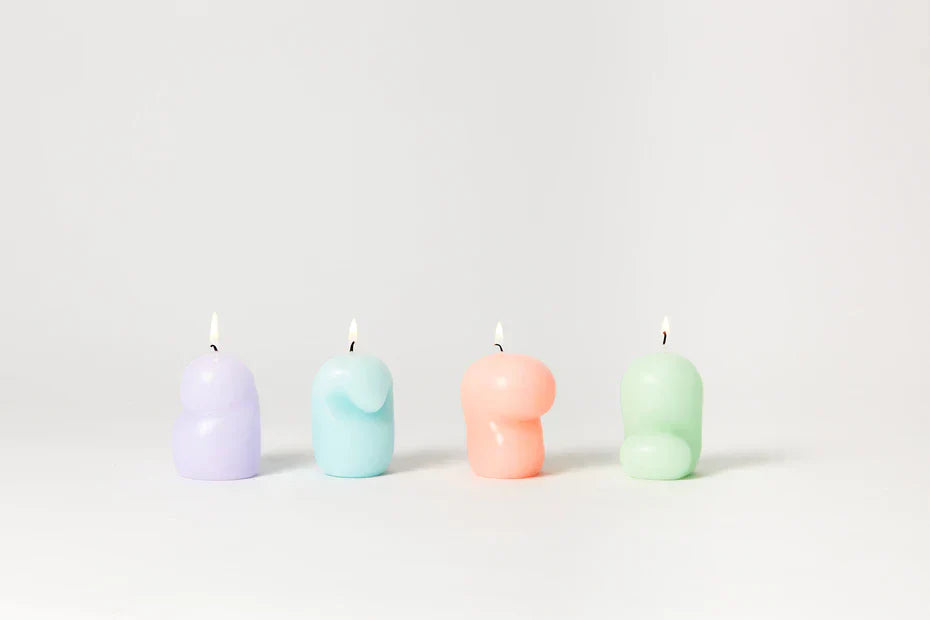 The next generation of Goobers is here. Akin to their parentals, each baby Goober boasts its own playful shape and distinct personality, just in miniature form. Their littleness is so endearing, you may find yourself calling them by name: Ba, Ma, La, and Da. Like a lil’ rascal, do not leave a lit candle unattended.