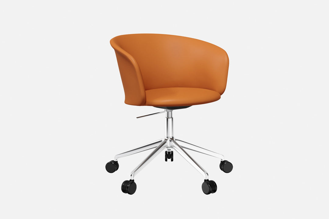 Both Kendo Swivel leg bases are 360° rotational. The 4-star leg base incorporates a return function to keep the chairs perfectly aligned around a table when not in use, while the 5-star leg base has a height adjustable mechanism. All variants are available in powder-coated or polished aluminum.
