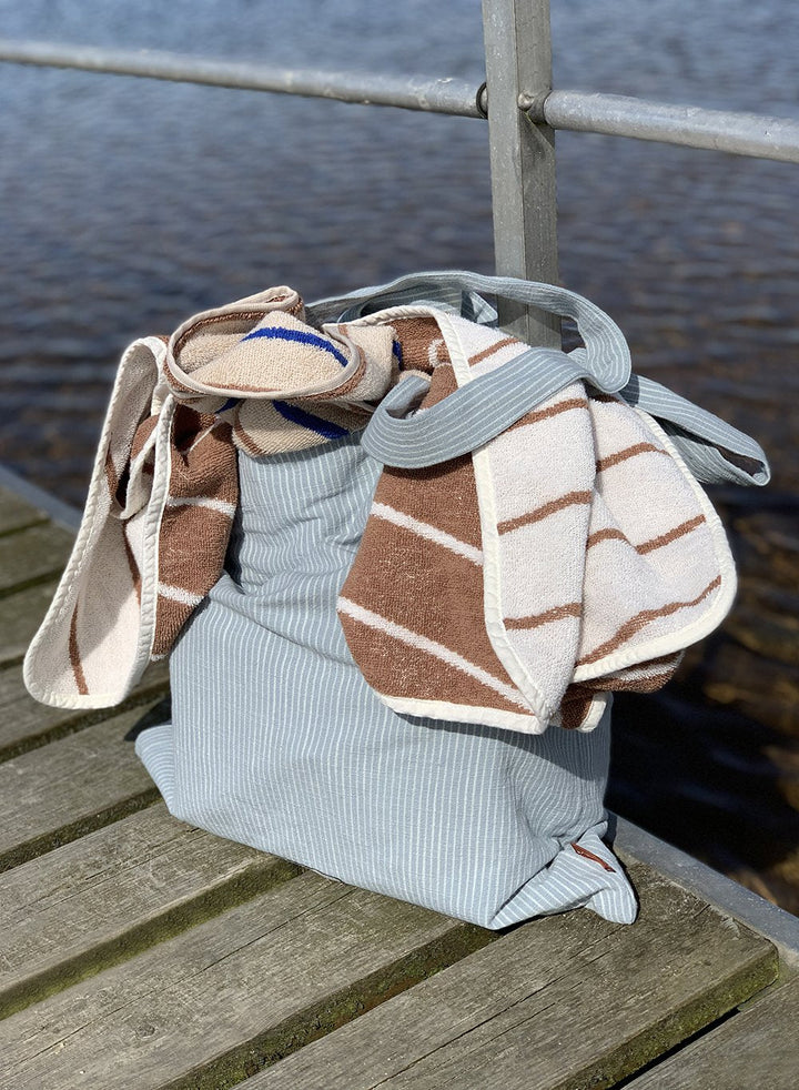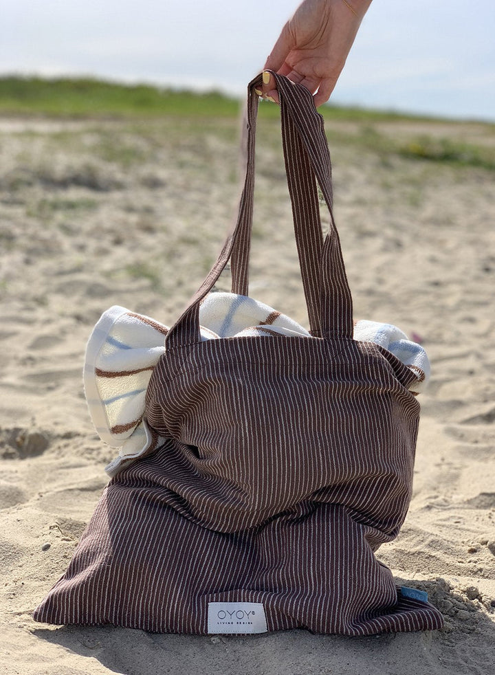 Striped tote bag in a woven quality with OYOY logo. A tote bag is a must-have and works perfectly as a daily bag for your everyday essentials or grocery shopping. We love doing something good for the environment. Bring a tote bag wherever you go instead of a plastic bag and reduce your waste of plastic.