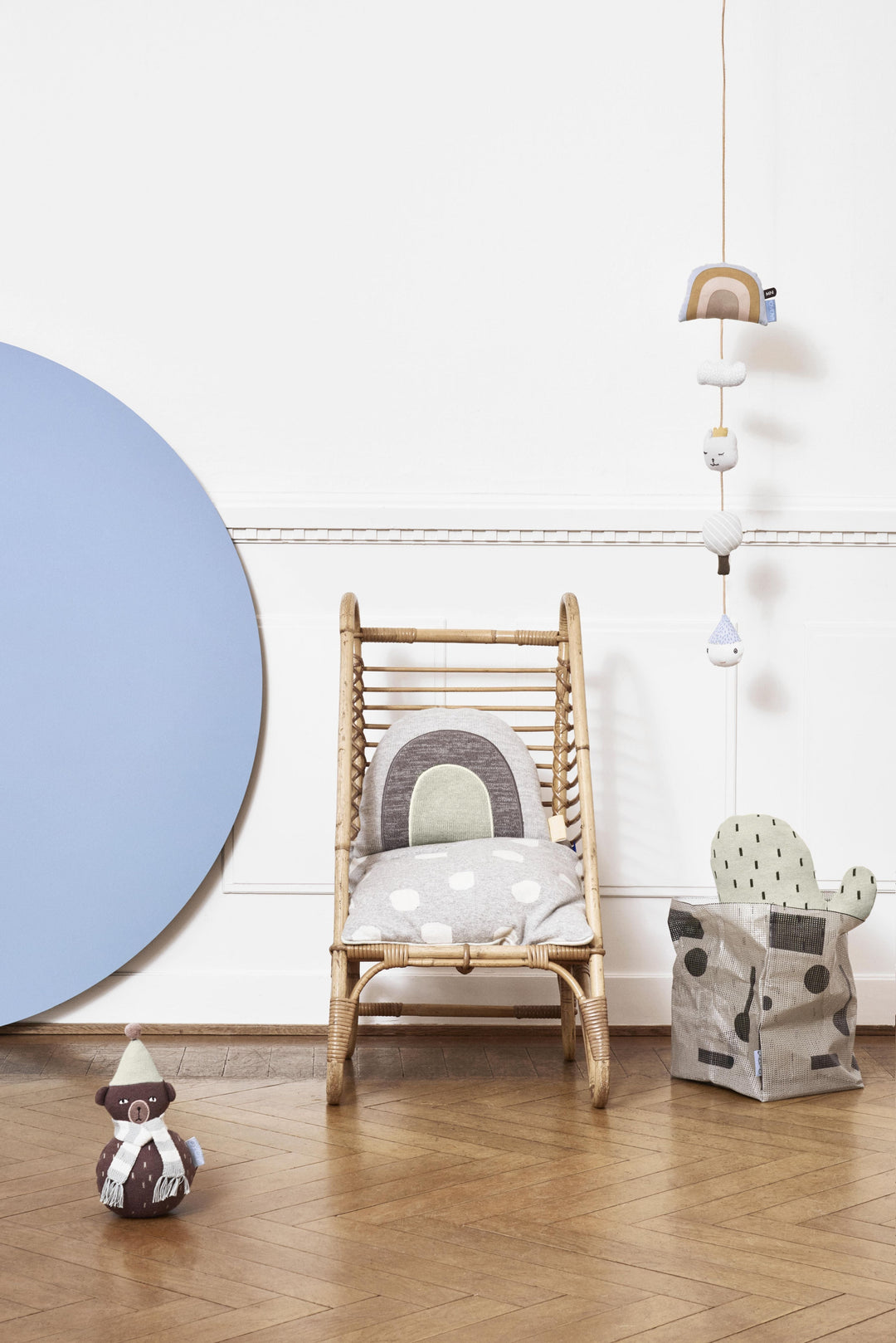 The Rainbow Mobile is made of 100% organic cotton, printed, and has a leather string for hanging purpose.