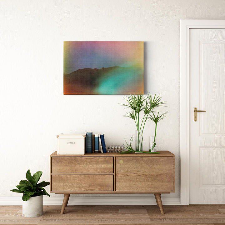 Our gallery-wrapped canvas is printed on artist-grade poly-cotton blend canvas and backed with hard, high-density wood fiberboard and a plastic frame. 1.25" thick