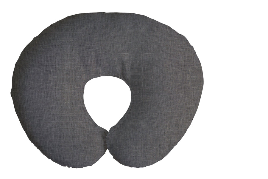 A must have for feeding and tummy time, cover your nursing pillow with a 100% linen slipcover in a medium gray, Slate.