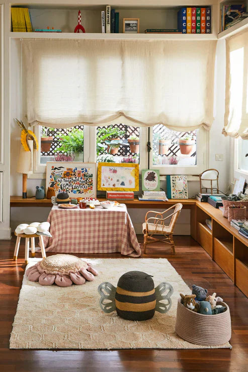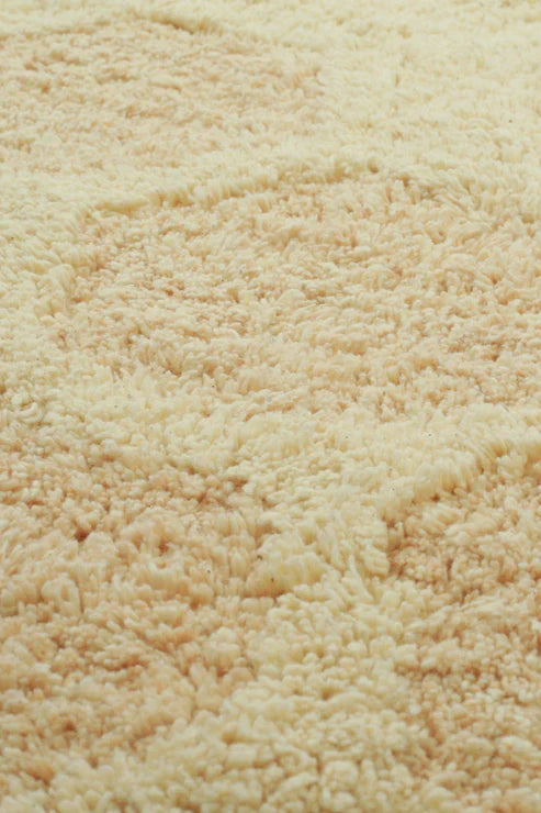 A unique design that goes beyond the basics. A rectangular cotton rug in reliefs and soft honey tones, inspired by the natural honeycomb created by bees.>With a slight gradient from ivory to golden hues, and a playful hexagonal pattern crafted in relief, this rug is all about texture. The varied pile heights create a rich and inviting feel, making it an investment in both quality and lasting style for your home.