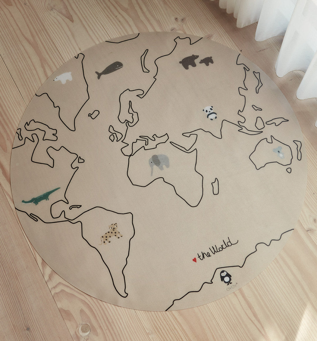 Avoid messy meals on the floor with The World Chair Mat. The chair mat is made of vinyl, which is a durable material that is easy and quick to clean. The mat has a non-slip underside.