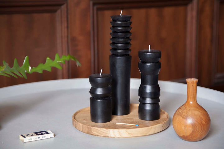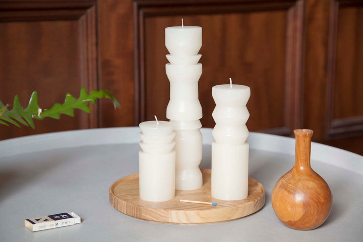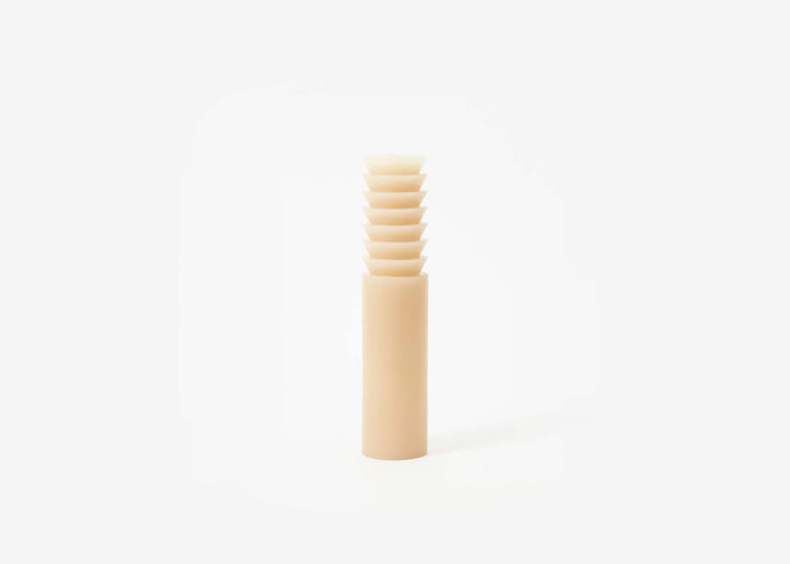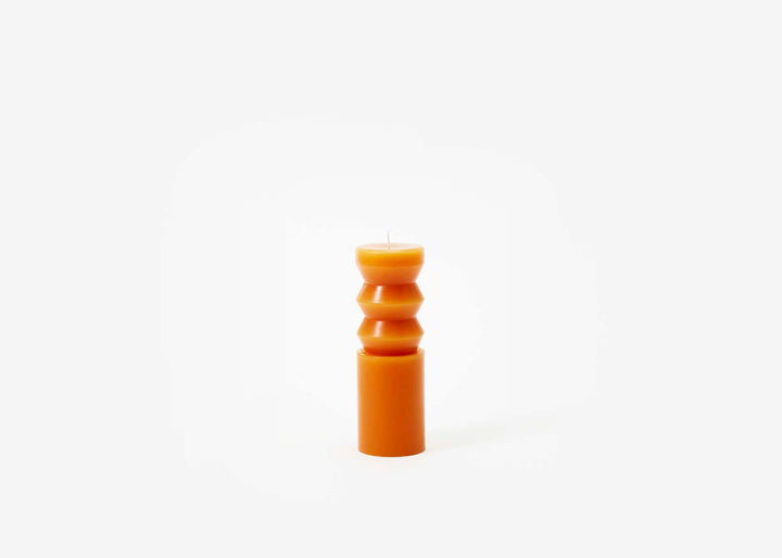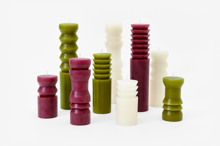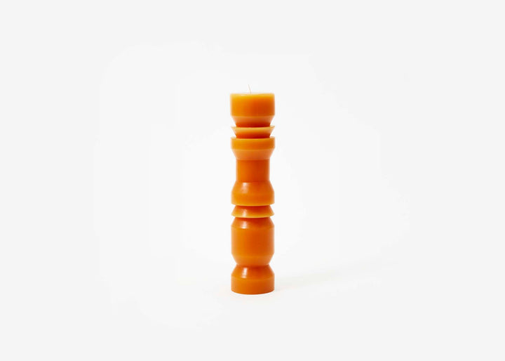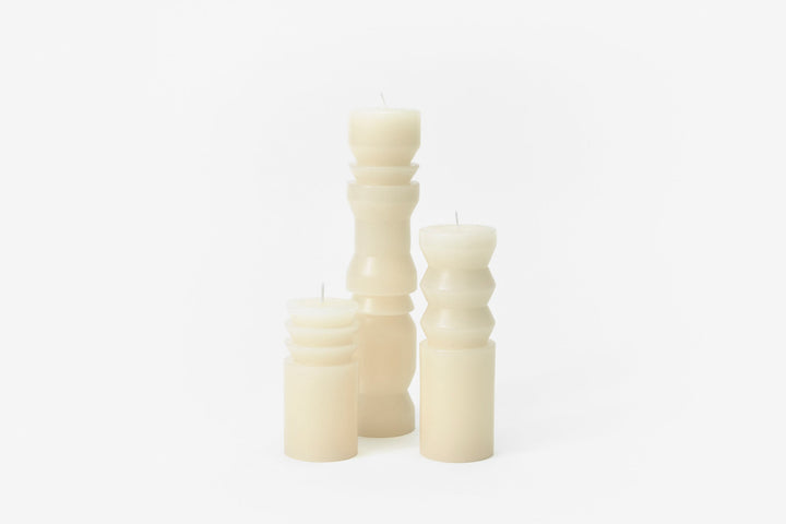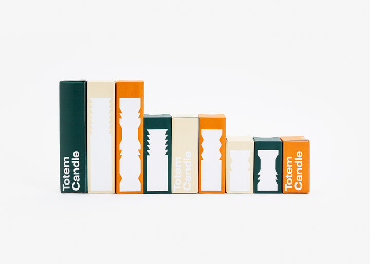 The Totem Candle is cast in unscented paraffin wax from forms originally created by turning beeswax on a lathe. Approximate burn time is 15/25/35 hours depending on the size of the candle. Do not leave burning candle unattended.